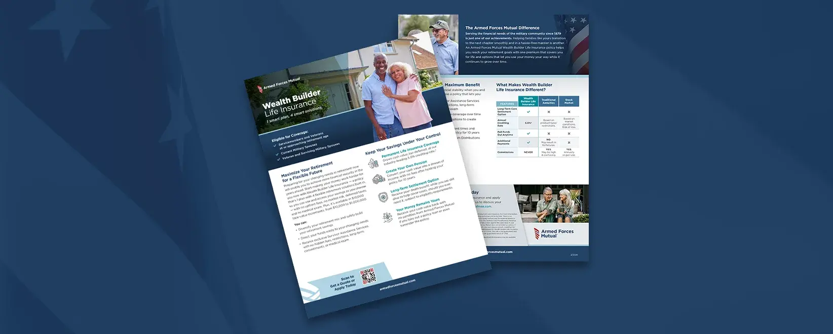 Build retirement income and lifelong protection with Wealth Builder Life Insurance from Armed Forces Mutual. Earn ...