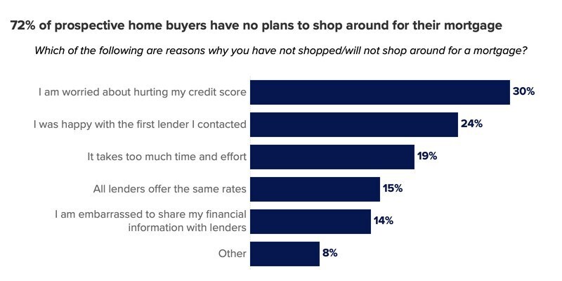 - They’re “happy with the first lender,” or shopping around just takes too much time and effort.